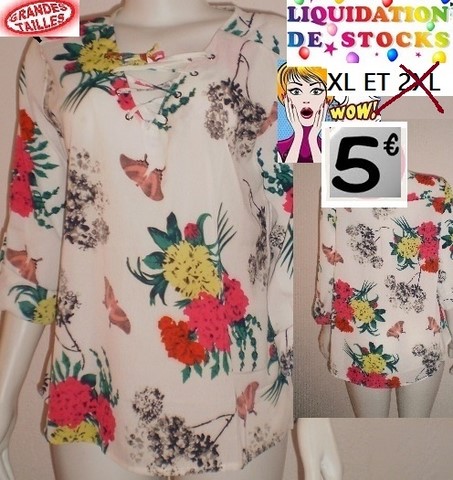 chemisier fleurie fond blanc taille 2XL