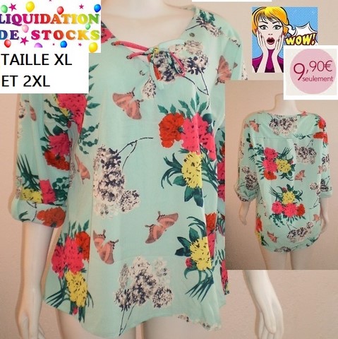 chemisier fleurie fond vert taille XL ET 2XL
