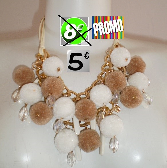 COLIER POMPONS MARRON