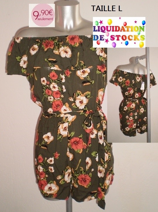 COMBI SHORT KAKI FLEURIE TAILLE L