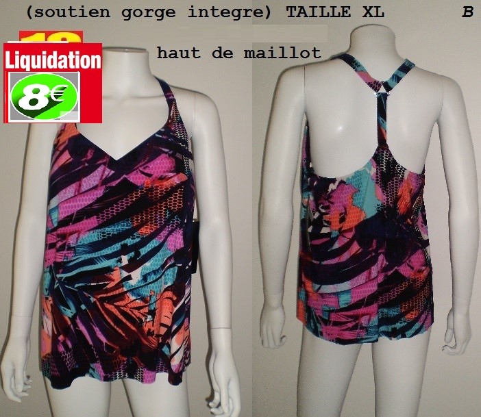 HAUT BARIOLE DOS NAGEUR(soutien gorge integre) TAILLE XL