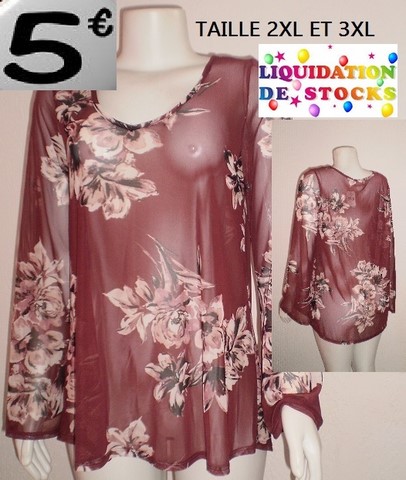 HAUT FLEURI FOND BORDEAU A MANCHES TAILLE 2XL ET 3XL