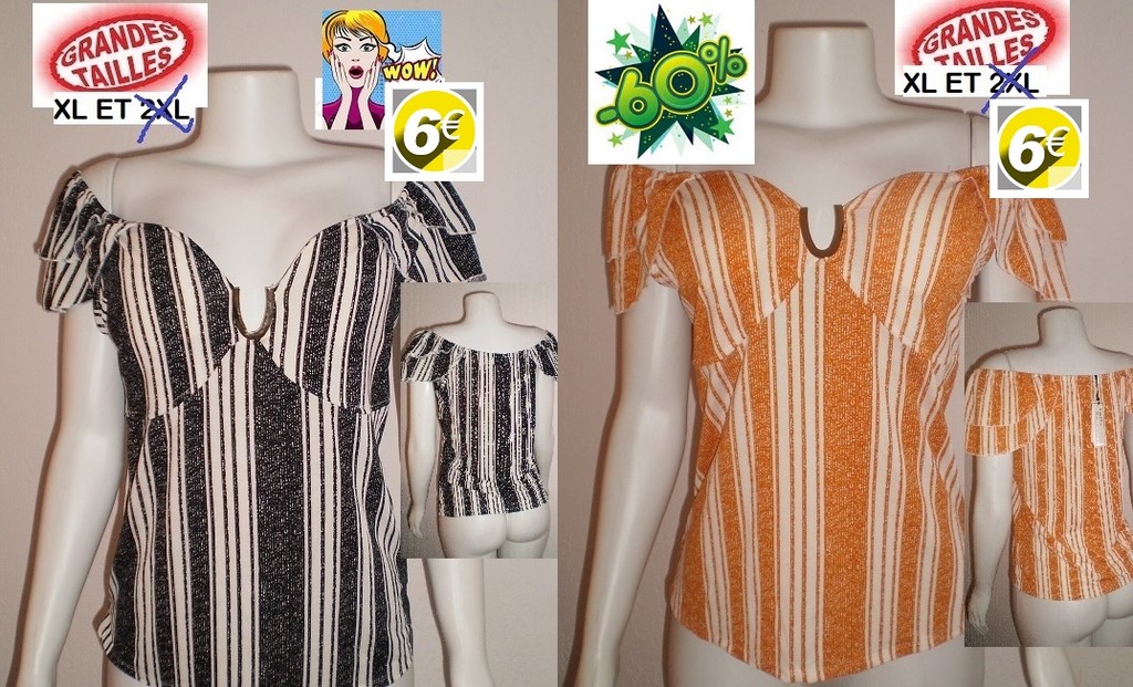 HAUT RAYE NOIR ou MOUTARDE TAILLE XL