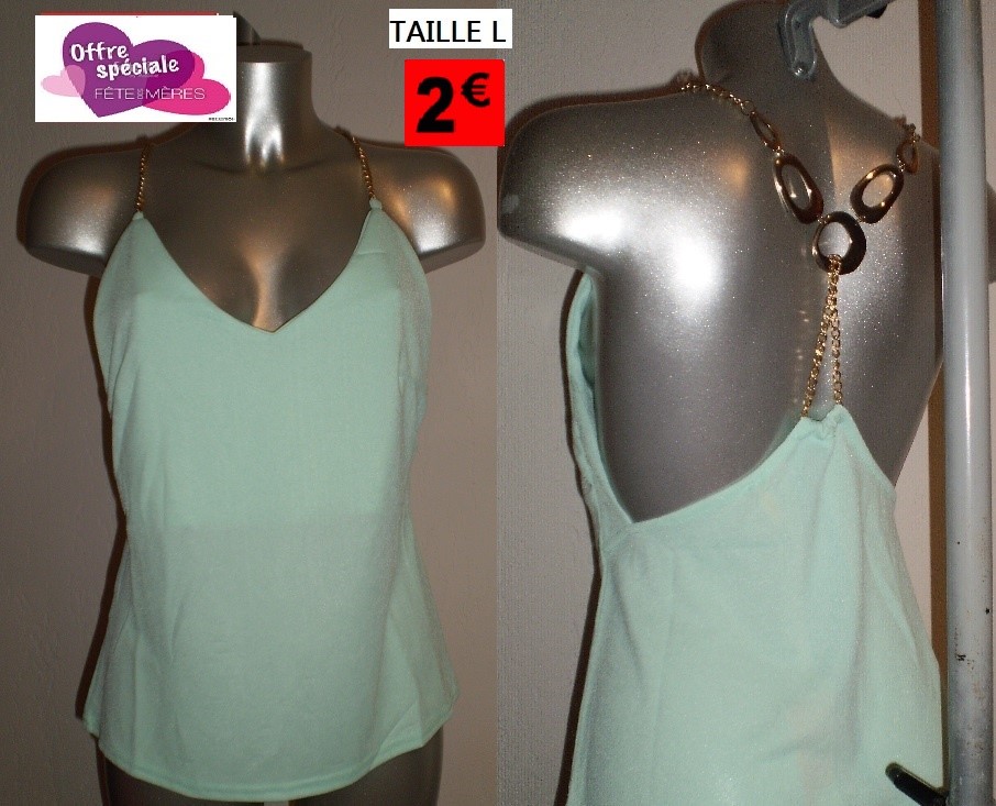 HAUT VERT DOS METAL OR TAILLE L