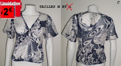 HAUT VOILE BLEU/BLANC NOUE DEVANT TAILLE M