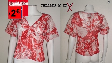 HAUT VOILE ROUGE/BLANC NOUE DEVANT TAILLE M