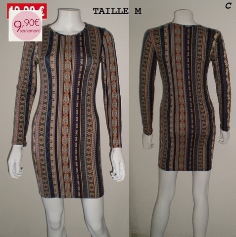 ROBE A MANCHE BLEU/MARRON TAILLE M