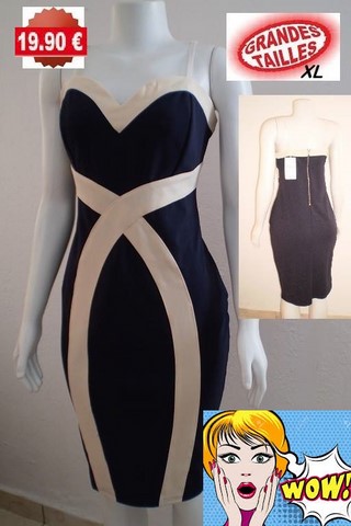 ROBE BLEU MARINE ET BEIGE TAILLE XL