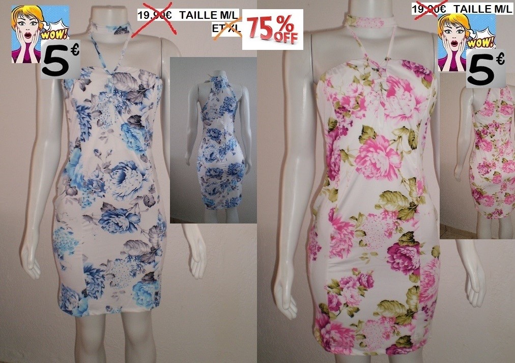 ROBE colier blanche FLEURIE ROSE TAILLE M/L