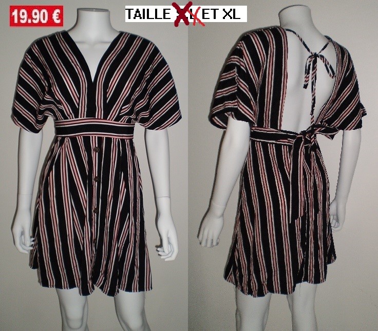 ROBE RAYEE NOIR A BOUTONS taille S,L ET XL