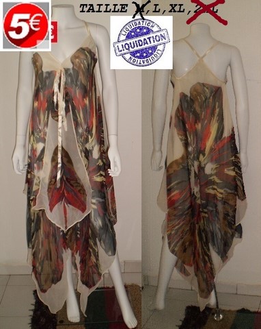 ROBE VOILE FOND BEIGE LONGUE TAILLE L,XL ET 2XL