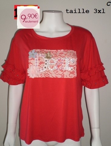 TEE SHIRT ROUGE ET PERLES TAILLE 3XL