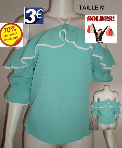 TOP A VOLANTS VERT/BLANC TAILLE M
