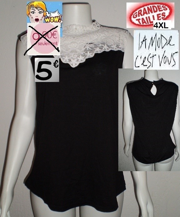 TOP NOIR DENTELLE ET PERLES TAILLE 4XL