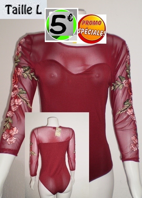 BODY BORDEAU MANCHES BRODEES TAILLE L