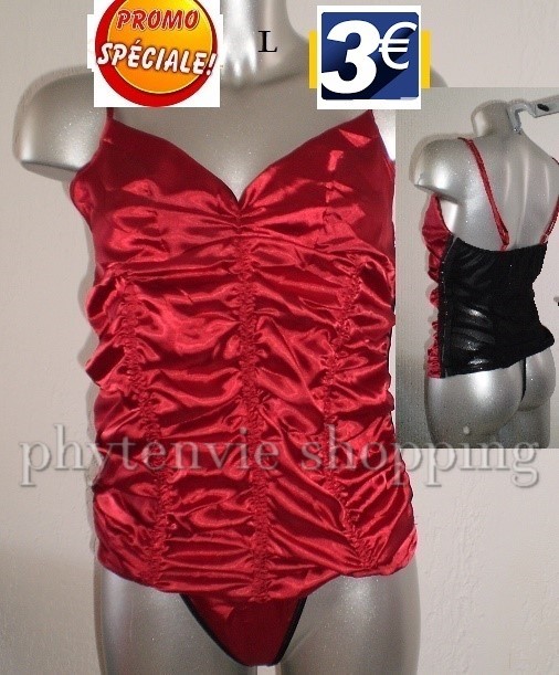 CORSET A BALEINES+STRING ROUGE TAILLE L