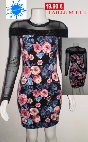 robe fleurie manche noires taille M et L