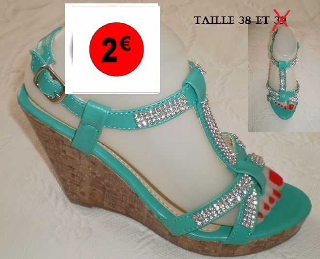 CHAUSSURES TALON COMPENSE VERT/STRASS EN 38 ET 39