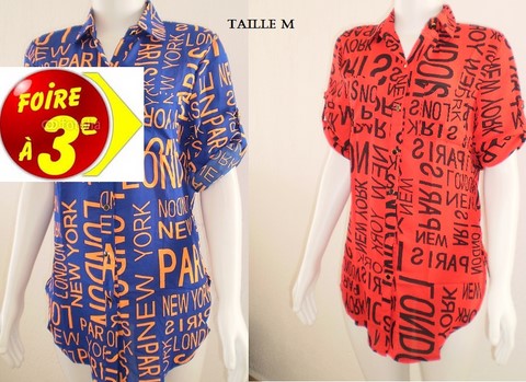 CHEMISE LETTRE BLEU ET ROUGE TAILLE M