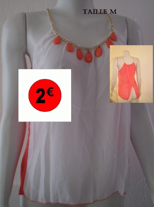 HAUT BICOLOR DOS OUVERT BLANC/SAUMON TAILLE M