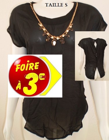 HAUT NOIR BOUTONS AU DOS+ COLLIER taille S