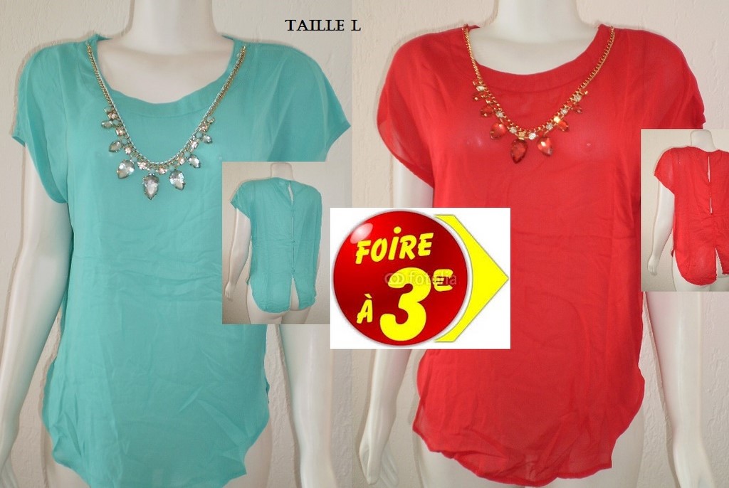 HAUT VERT/ROUGE BOUTONS AU DOS+ COLLIER taille L