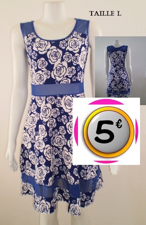 ROBE EVASEE BLEU /BLANC TAILLE L