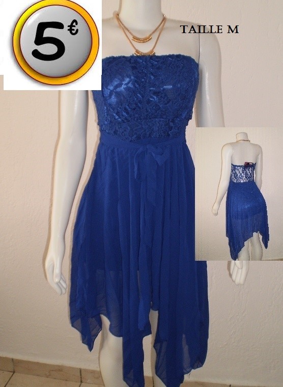 ROBE FLUIDE BUSTIER DENTELLE BLEU TAILLE M