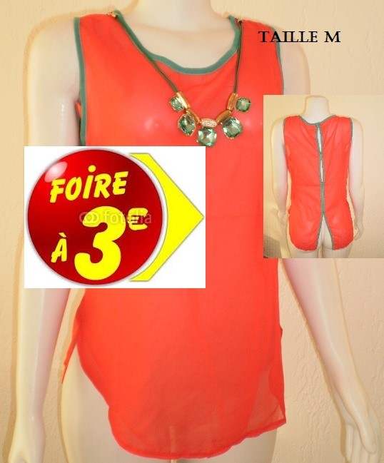TUNIQUE BOUTONS AU DOS ROUGE +COLLIER(s enleve) taille M