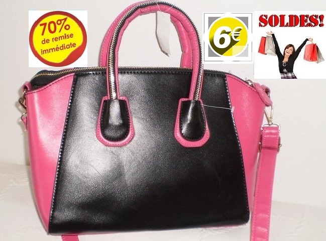 SAC A MAINS NOIR ET ROSE