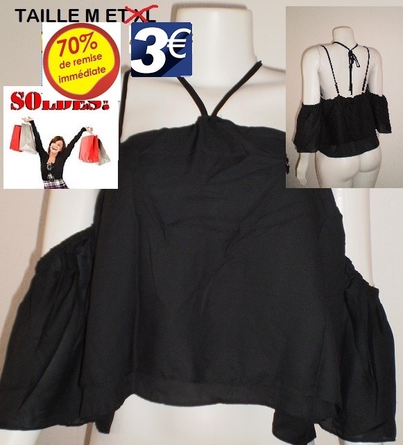 TOP A VOLANTS NOIR TAILLE M