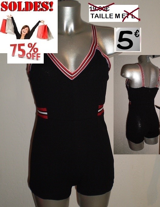 combi short STRETCH NOIR A BRETELLES SPORT TAILLE M