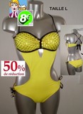 MAILLOT 1 PIECE HAUT STRASS JAUNE TAILLE L