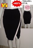 JUPE STRECH NOIR /BLANC FENDUE AU DOS TAILLE L ET XL