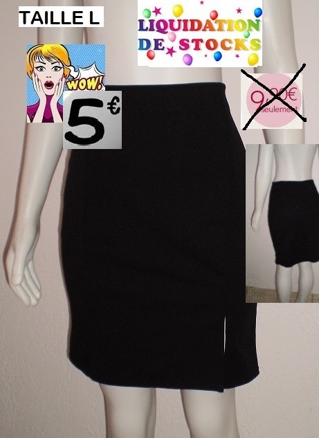 JUPE STRECH NOIR FENDUE DEVANT TAILLE M