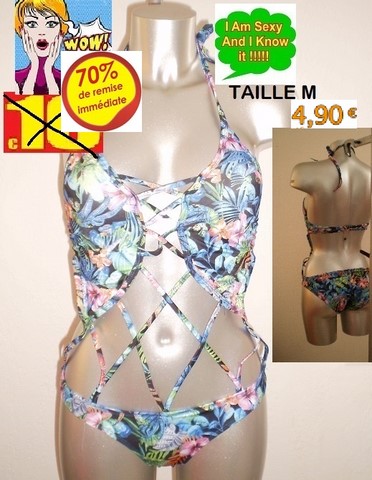 MAILLOT 1 PIECE FLEURI FOND BLEU TAILLE M
