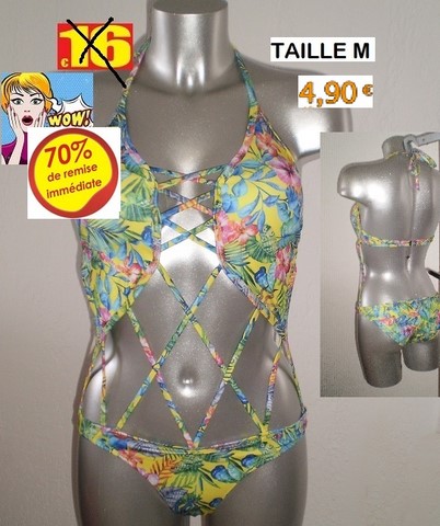 MAILLOT 1 PIECE FLEURI FOND JAUNE TAILLE M