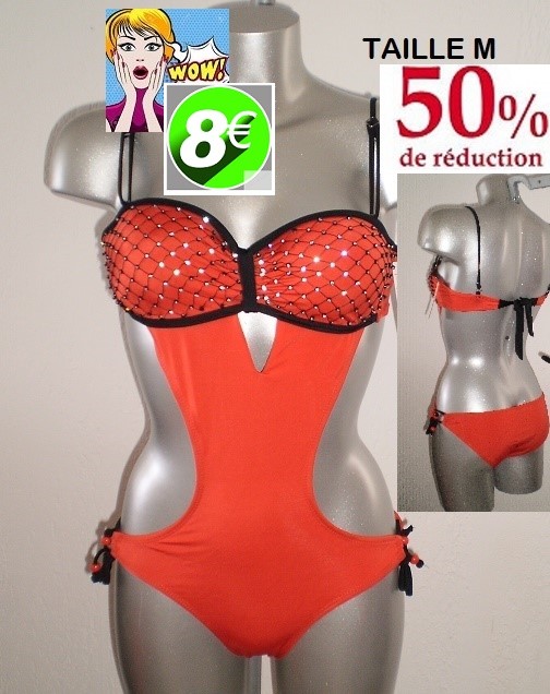 MAILLOT 1 PIECE HAUT STRASS BRIQUE TAILLE M