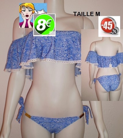 maillot 2 pieces a volant BLEU DENTELLE taille M