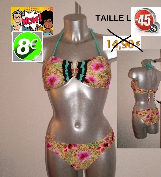 MAILLOT 2 PIECES FLEURI FOND TIGRE TAILLE L