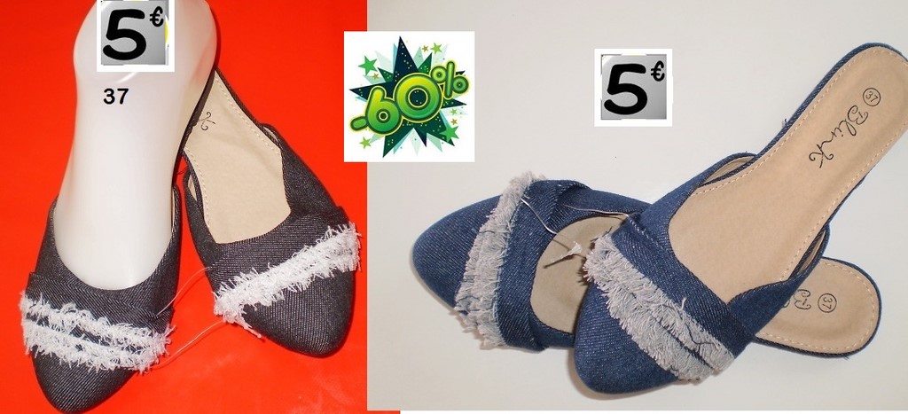 MULES JEAN NOIR ou BLEU TAILLE 37