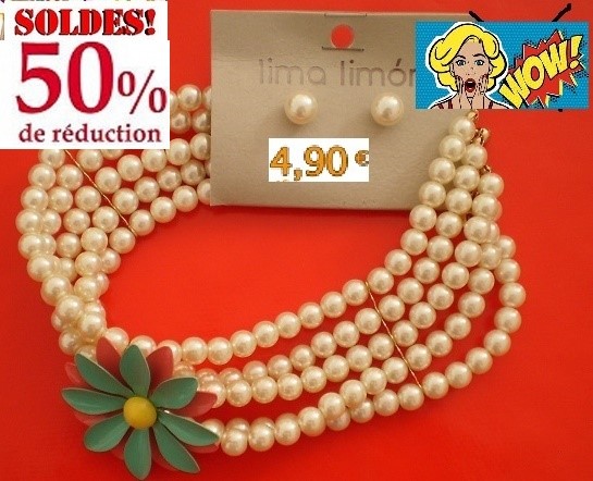 PARURE RAZ DE COU PERLES ET FLEUR