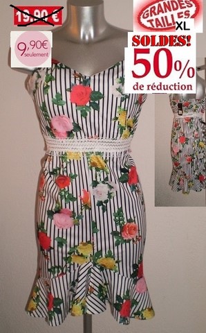 ROBE FLEURS ET RAYURES NOIR TAILLE XL