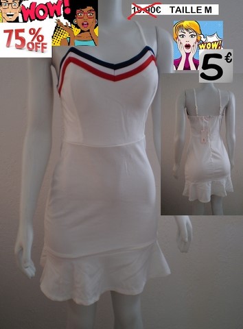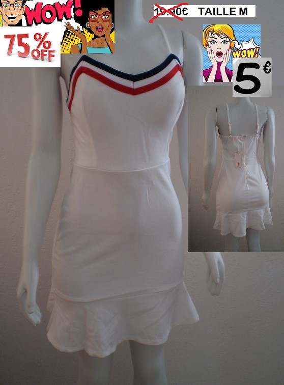 ROBE STRETCH BLANC A BRETELLES SPORT TAILLE M