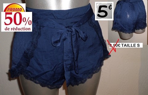 SHORT BLEU DENTELLE A POCHE TAILLE S