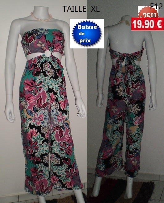 COMBIPANT BUSTIER FLEURIE FOND MAUVE TAILLE XL
