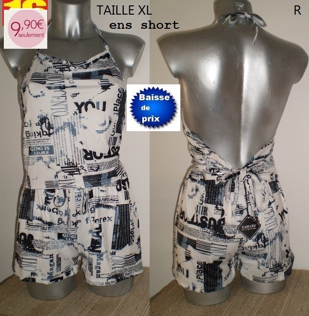 ENS SHORT DOS NU JOURNAL BLANC TAILLE XL