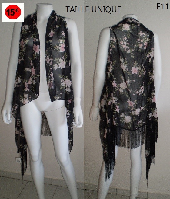 GILET OUVERT FLEURI A FRANGE TAILLE UNIQUE
