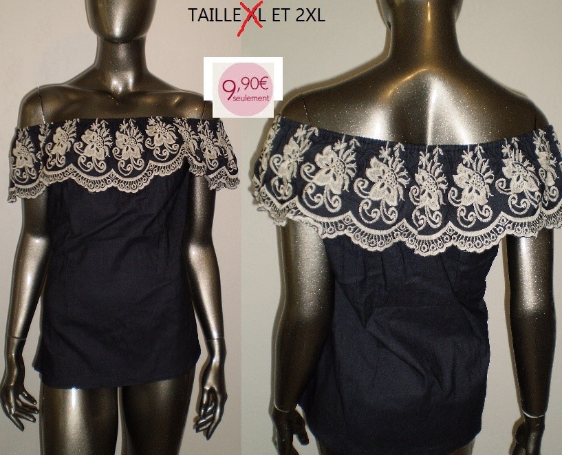 HAUT DENTELLES EPAULES NUES BLEU TAILLE 2XL ET XL