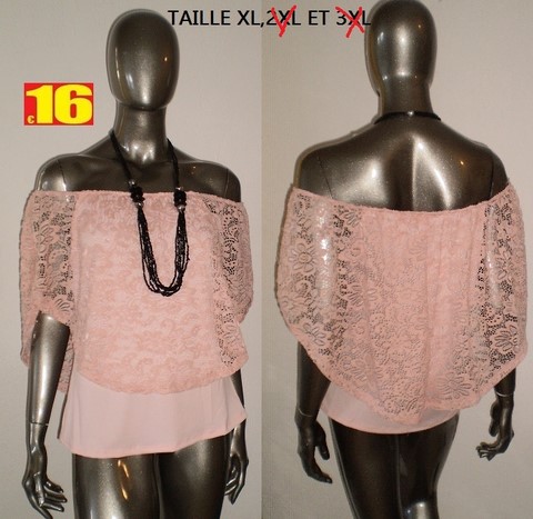 HAUT EPAULES NUES DENTELLE ROSE taille XL,2XL ET 3XL